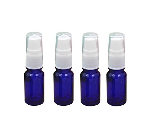 4PCS 10ml Blue Refillable Empty Glass Cosmetic Lotion Pump Pot Bottle Container with White Plastic Cap for Travel and Vacation