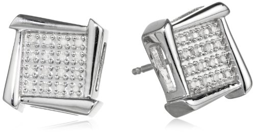 Geometric stud earrings featuring pave-set cluster of diamond accents within sterling silver