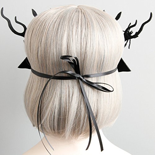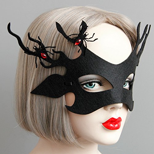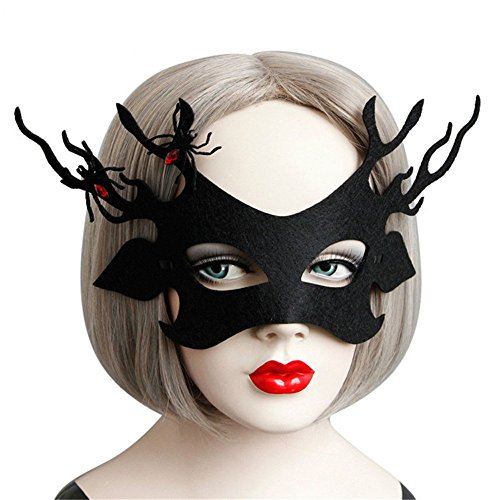 Half Face Black Deer Mask with Spider Decor for Halloween Masquerade Prop Party