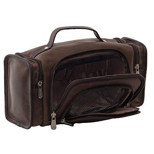 Studio : Piel Leather Publisher : Piel Leather Binding : Apparel Product Description U-zip opening to main compartment with interior elastic straps to secure personal items. Top u-zip compartment with a mesh backing. Two large side zip pockets, water resistant lining throughout, and a top handle for easy carrying. 0