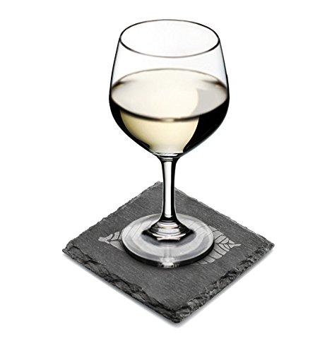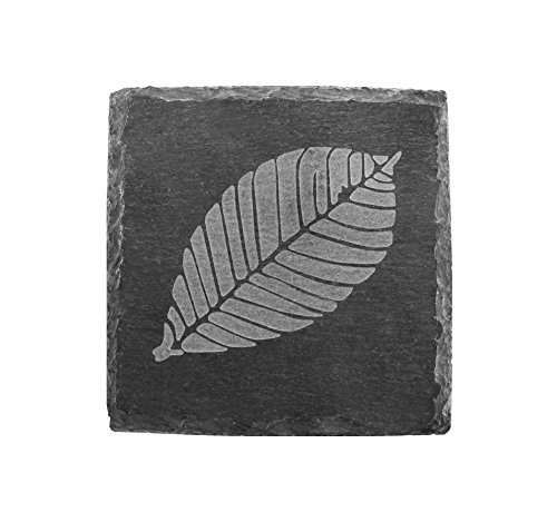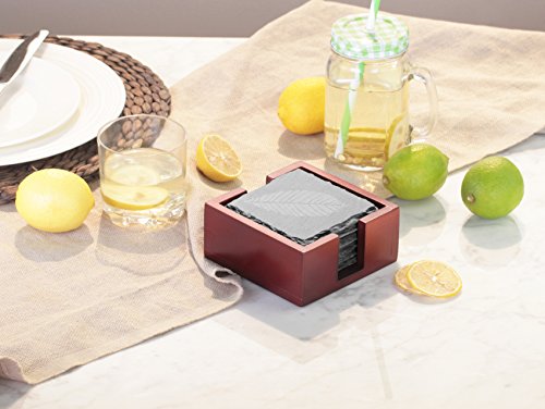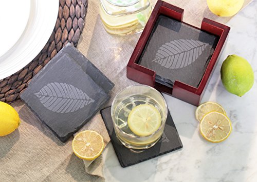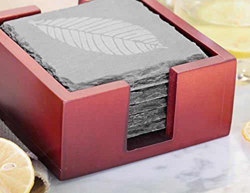 Artaste 28492 Slate Coasters with Etched Leaf, Set of 6 with Solid Wood Holder
