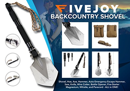 -. Title : FiveJoy Compact Military Folding Shovel - Portable Multitool, Tactical Entrenching Tool for Camping, Backpacking, Outdoor Hiking, Car, Garden, Snow, Heavy Duty Emergency Survival Gear (Case Included)