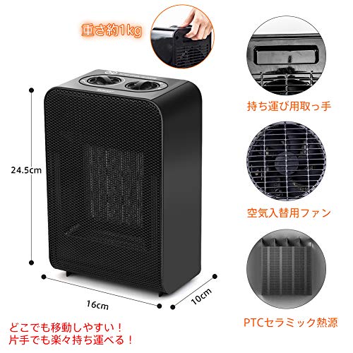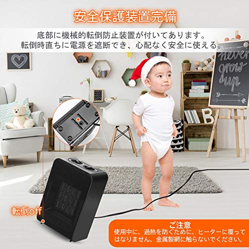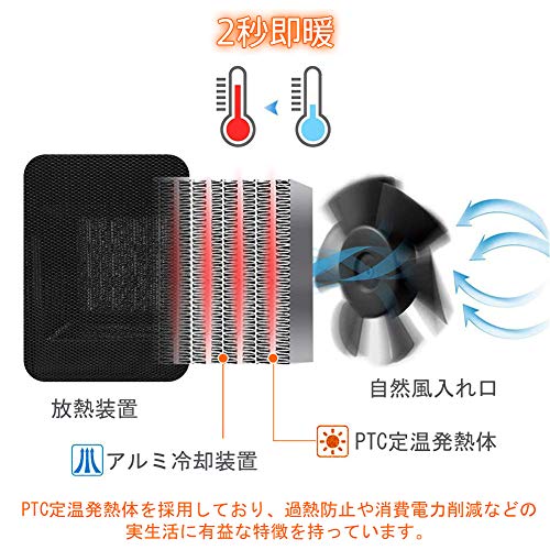 厳選材料:発熱部分は安定性一番高いPTCセラミック製コンポーネットを採用しています。全体的は燃えにくいABS防火素材で使用している上で、内から外まで保護アレンジを施していて、火災が起きることが心配ありません。