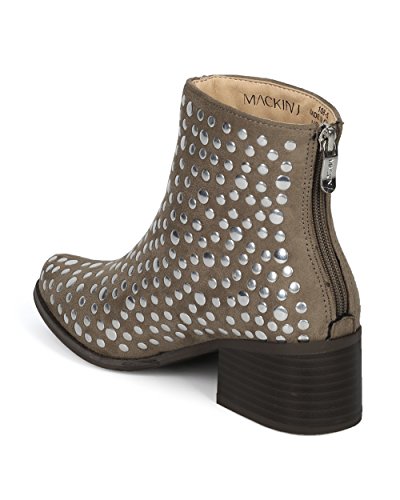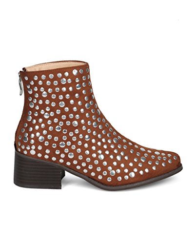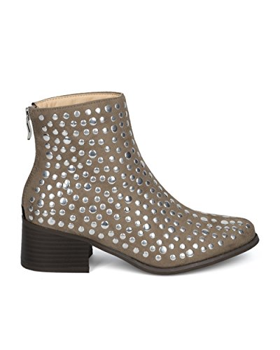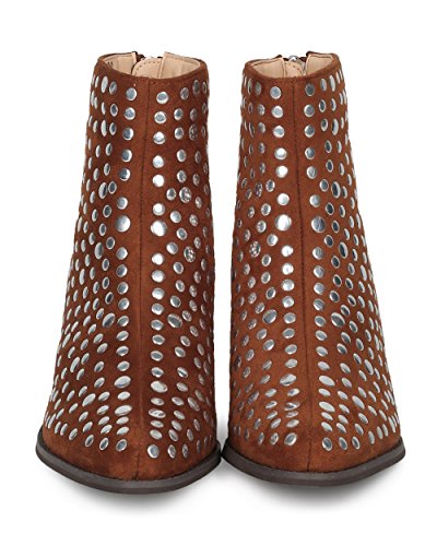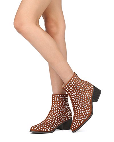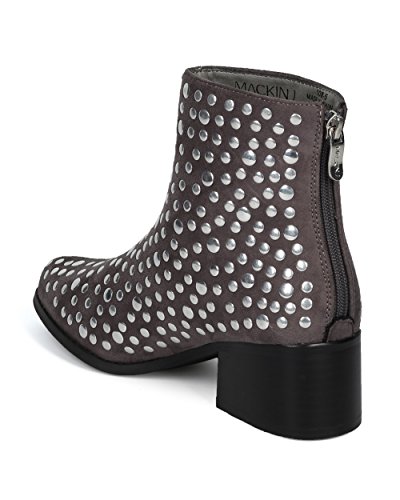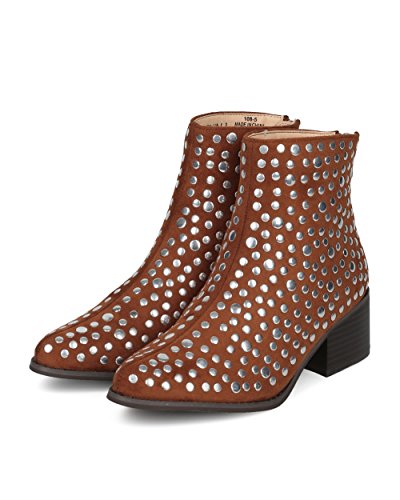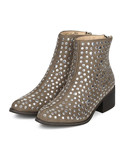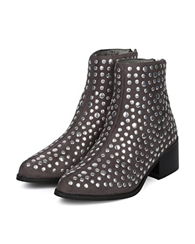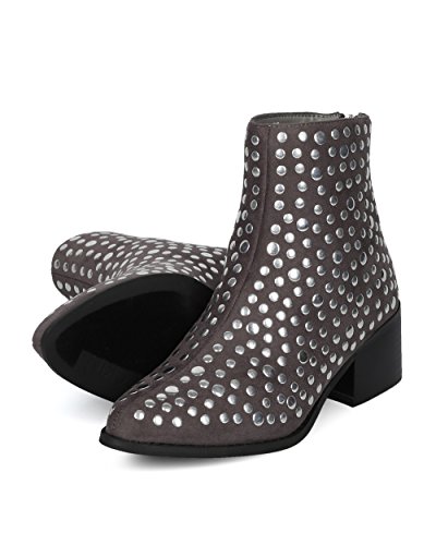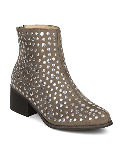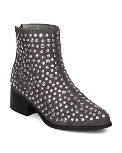 Women Studded Pointy Toe Low Block Heel Bootie - Versatile Androgynous Fashion Ankle Boot - HE9...