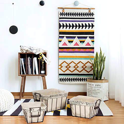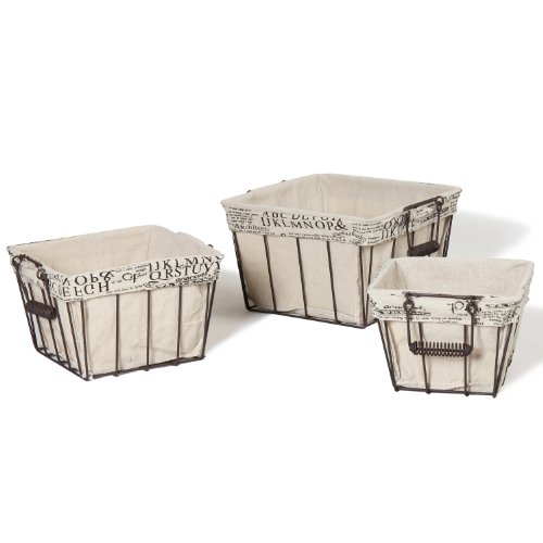 Adeco Multi-Purpose Rectangular Iron Baskets with Folding Handles Home Decor (Set of 3)