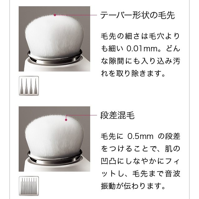 0.1mm以下の濃密泡がしっかりと肌へ密着し、3Dの音波振動を肌へしっかりと伝えます。