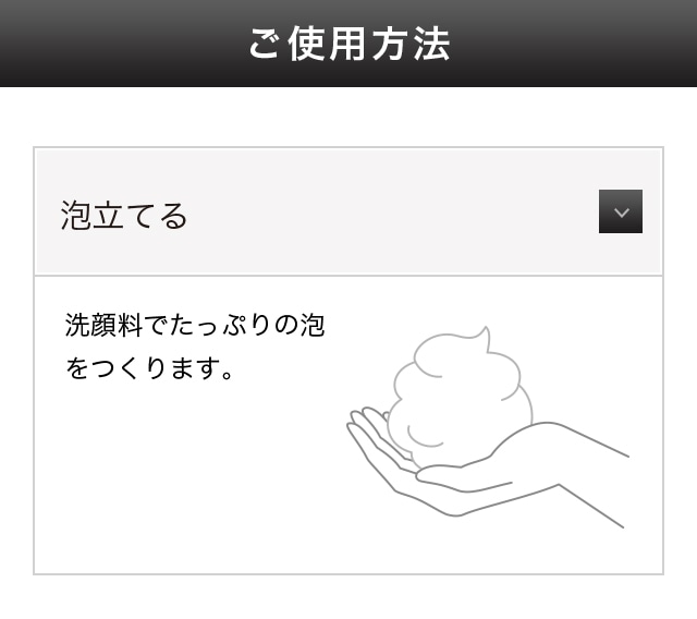 微細で濃密な泡が、肌をやさしく、細部まで洗い上げる。