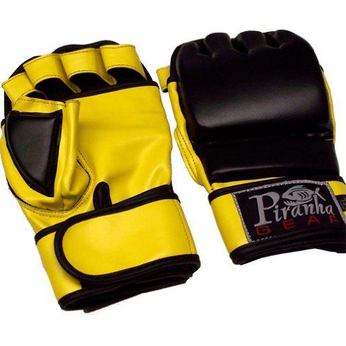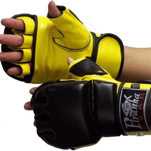 -. Binding : Sports -. Brand : Piranha Gear -. Feature : We first intended these for people that practice MMA or UFC mixed martial arts / but they work just as well for Karate, Boxing, and during general grappling / Ideal for anyone that does heavy bag work or wants lots of protection, and with an open finger design, works well for grappling -. Label : Piranha Gear -. Manufacturer : Piranha Gear -. Model : 31-1-628 Pk (M)-P -. MPN : 31-1-628 BkYw -. PartNumber : 31-1-628 BkYw -. ProductGroup : Sports -. ProductTypeName : SPORTING_GOODS -. Publisher : Piranha Gear -. Studio : Piranha Gear -. Title : Piranha Gear MMA Gel Fight Gloves