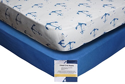 Crib Sheet Set by Upstreet: 100% Cotton Value Jersey Knit Fitted Portable Baby Crib Sheet, Boy, Blue, 2 Count