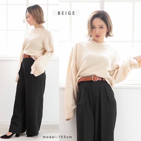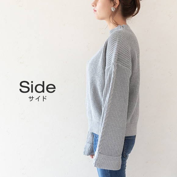 ケーブル編みのもようが入ったフレア袖がさりげなくオシャレ♪
