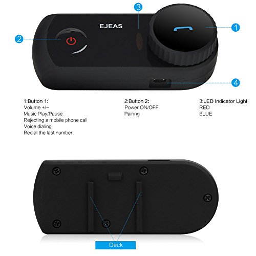 EJEAS Motorcycle Bluetooth Intercom / Headset 1200M Full Duplex Interphone Outdoor Sports Skiing Scooter Communication Waterproof Motorbike Helmet Headset Advanced Noise Control (Single, 2 users)