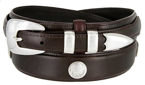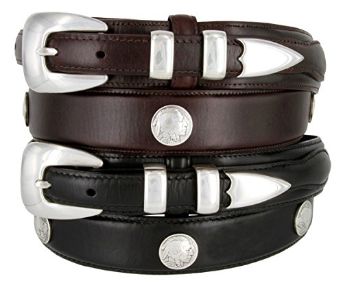 Product Description This Belt Is Made Of The Finest Oil Tanned Cowhide Leather Accented With 4 Piece Sterling Silver Finish Buckle Set And 5 Buffalo Nickle Indian Nickel Reproduction Conchos 0