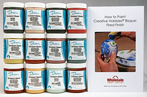 Duncan INKIT-1 Envision Glaze Kit for Ceramics - Set of 12 Best Selling Colors in 4 Ounce Jars with Free How to Paint Ceramics Booklet