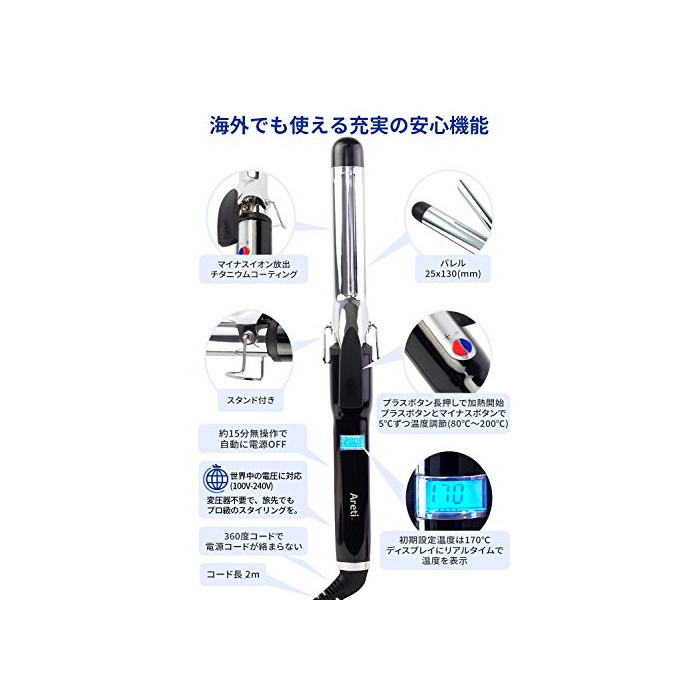 원본상품명: Areti アレティ マイナスイオン カ?ル ヘアアイロン 海外?? プロ仕?