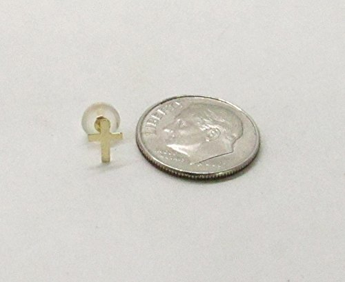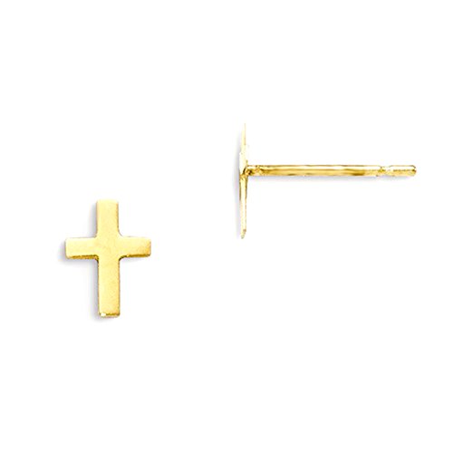 -. Title : Small 14K Yellow Gold Children's Cross Post Stud Earrings, 15mm x 6mm