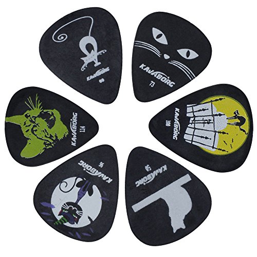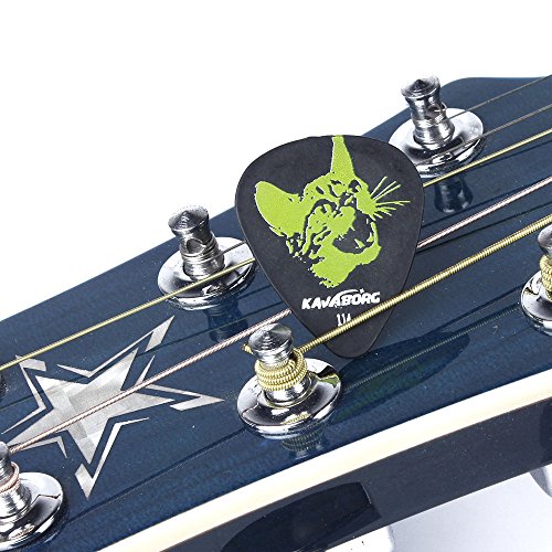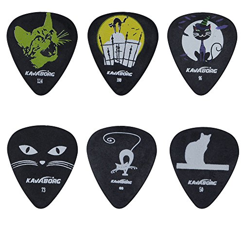 SIZE GAUGE THICKNESS: 0.5MM, 0.73MM, 0.96MM, 1.0MM, 1.14MM, all size packed in a box, 12 Pack in total. suitable for acoustic, electrical and bass guitars.
