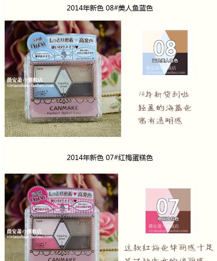 2012年日本最新 CANMAKE完美5色眼影盒 5色选绝非秋冬季的浓厚色,而是更轻盈、更亮泽只需一盒,既可以化出上班或上学的自然通勤眼妆,又可以打造华丽感的上街妆容
