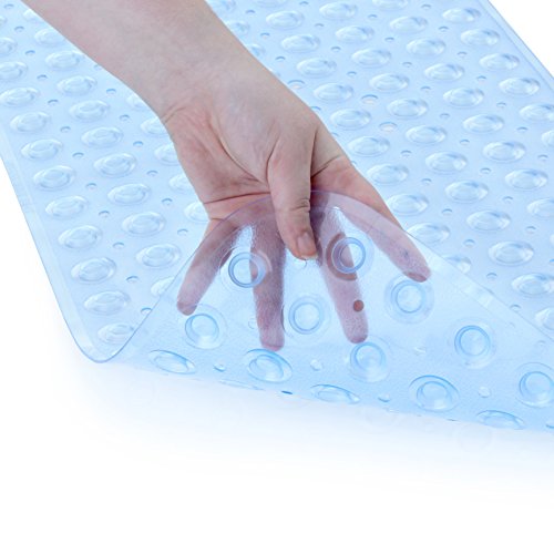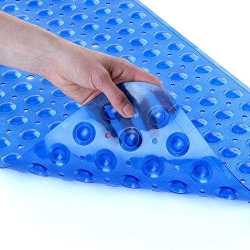-. Brand : SlipX Solutions -. Feature : 30% more coverage than the average bath mat. 16"W x 39"L. / Reliable slip protection, using suction cups, for the full length of your tub. / For use on non-textured surfaces. / Cushioned, comfortable feel underfoot. / Made of high-quality vinyl. Machine washable. -. Label : Venturi -. Manufacturer : Venturi -. PackageQuantity : 1 -. ProductGroup : Home -. ProductTypeName : HOME_BED_AND_BATH -. Publisher : Venturi -. Studio : Venturi -. Title : Extra Long Vinyl Bath Mat
