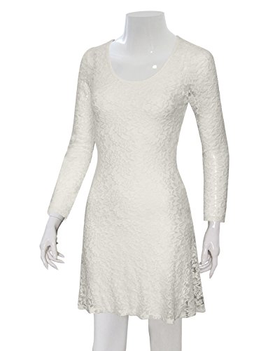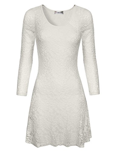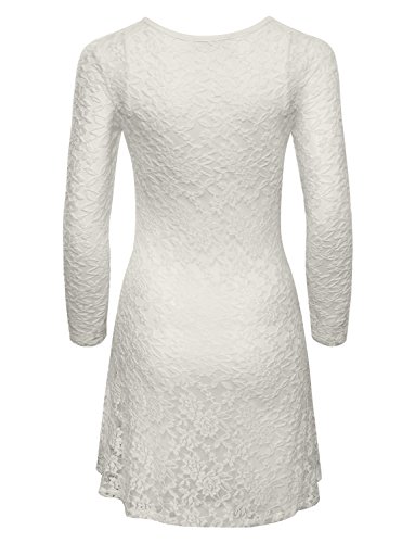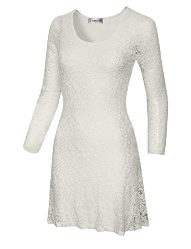 Title : Tom's Ware Women Stylish Floral Lace Long Sleeve Scoop Neck Flare Dress TWCWD109-IVORY-US L