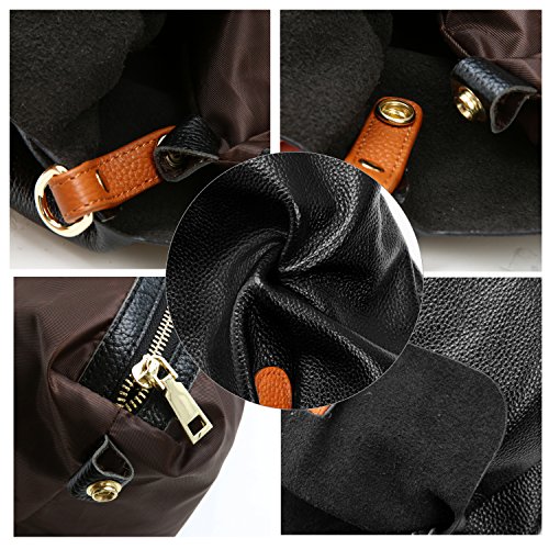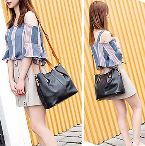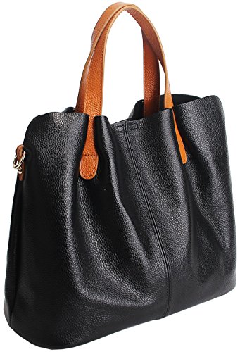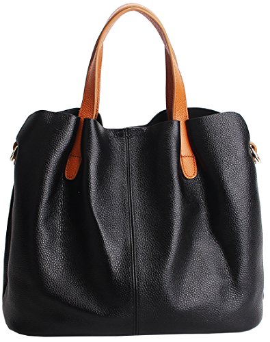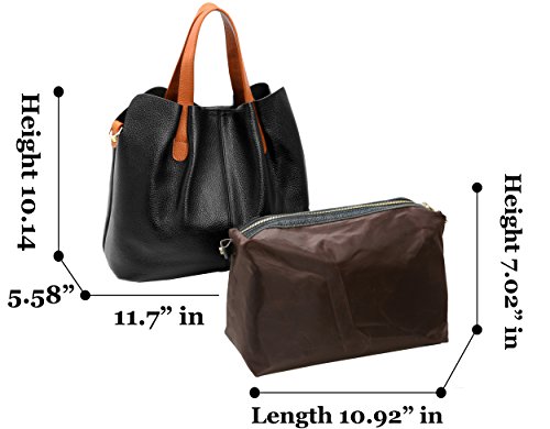2 Piece including leather handbag and polyester clutch inside. Small bag but large capacity. No lining for leather handbag.