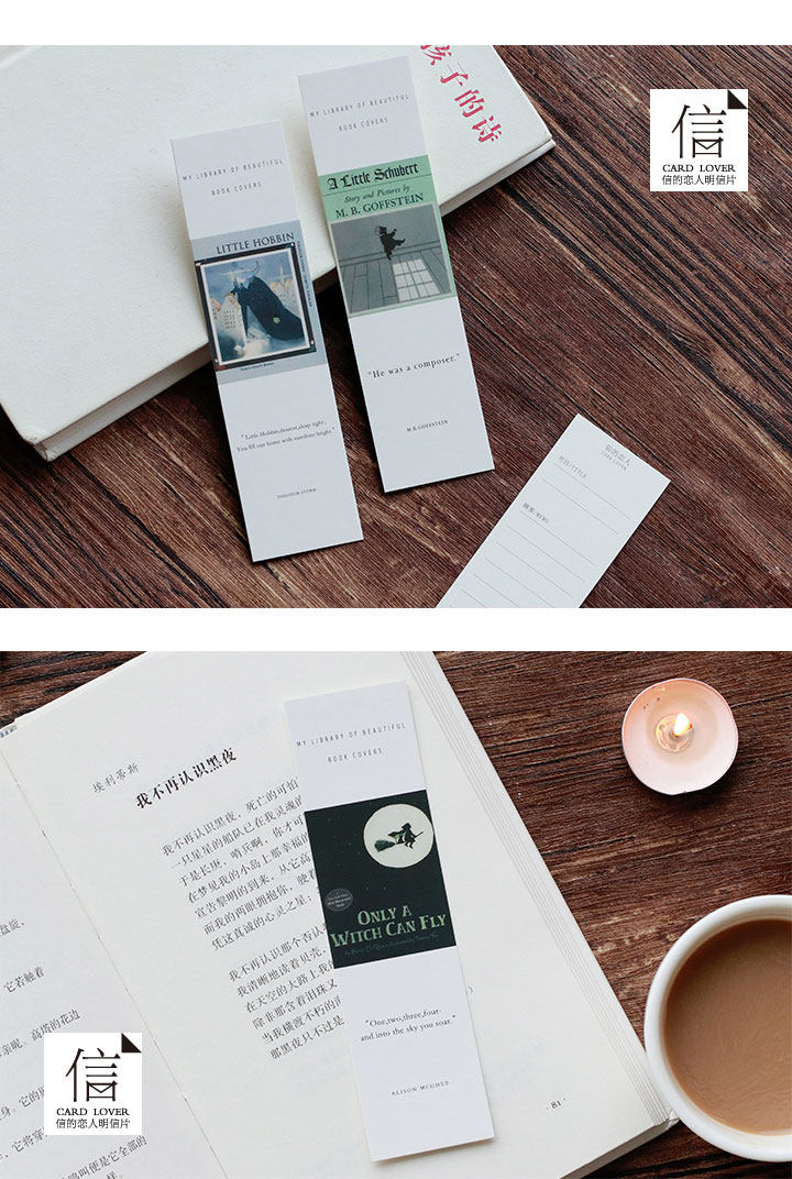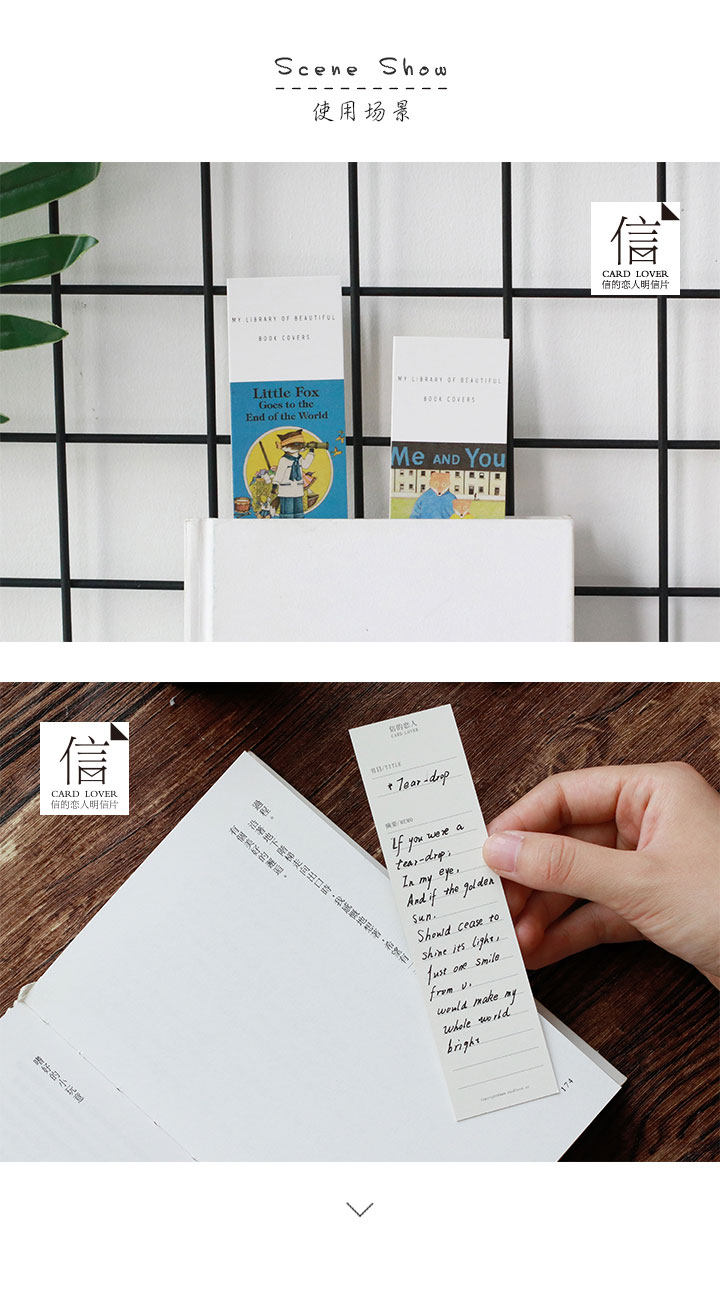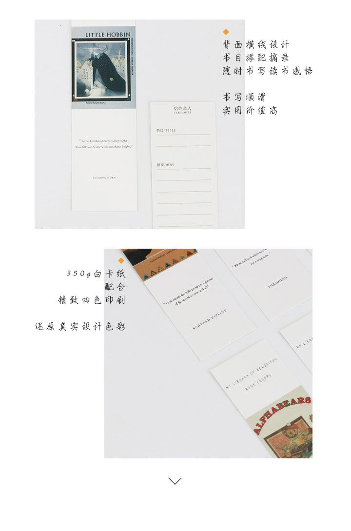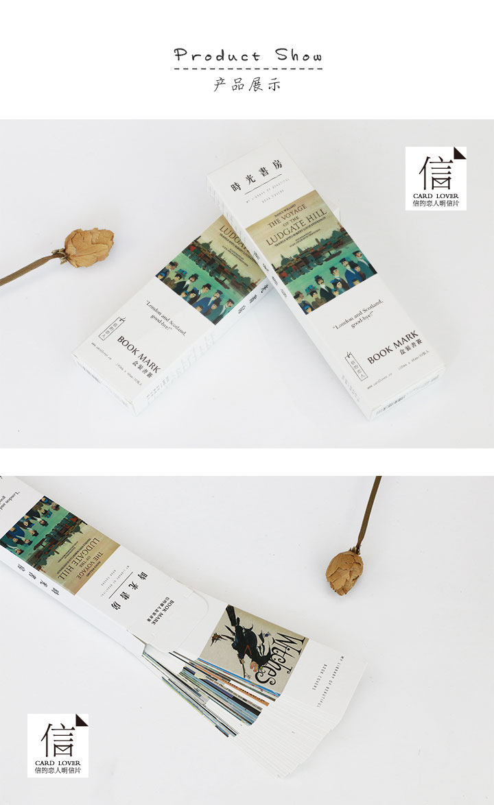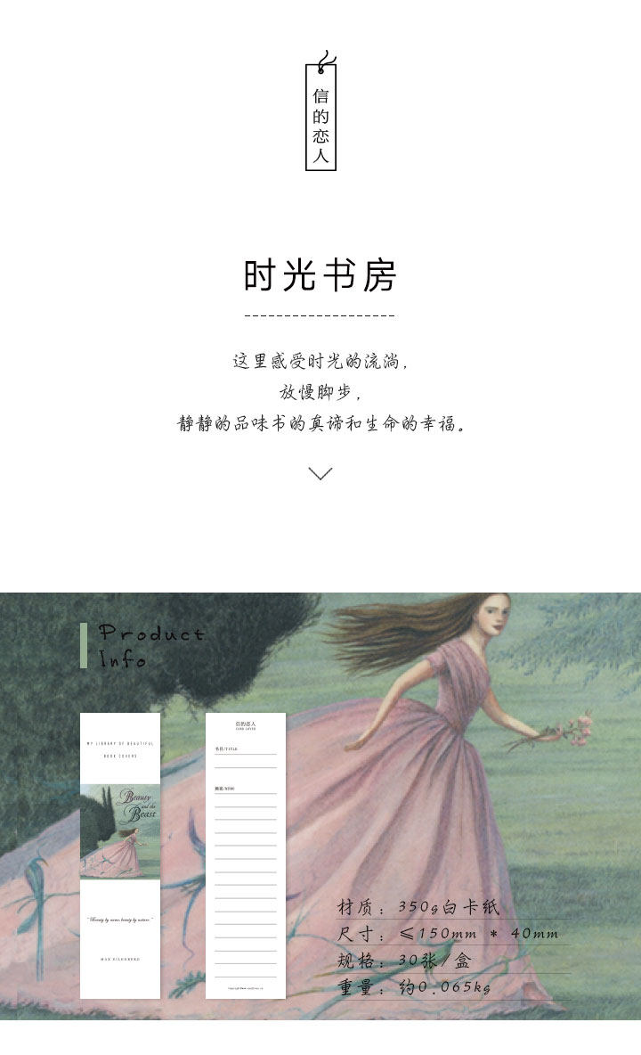 时光书房纸质书签 文艺小清新手绘书签 留言小卡片盒装30
