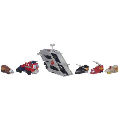 -. Feature : Optimus Prime figure combines with Omega Supreme figure (sold separately) / Assault vehicles combine with truck cab to create Super Optimus Prime / Trailer becomes an Energon tower with helicopter landing pad / Vehicle transport trailer / Figure comes with accessories