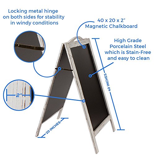 OVERSIZED | DOUBLE-SIDED | STURDY - Large 40" x 24" High-Grade Porcelain (Non-Porous) Steel Sign Surface guarantees Durable, STAIN-FREE Reuse and easy writing access. Dual Locking Metal Hinges provide additional standing support for any wind or traffic issues.