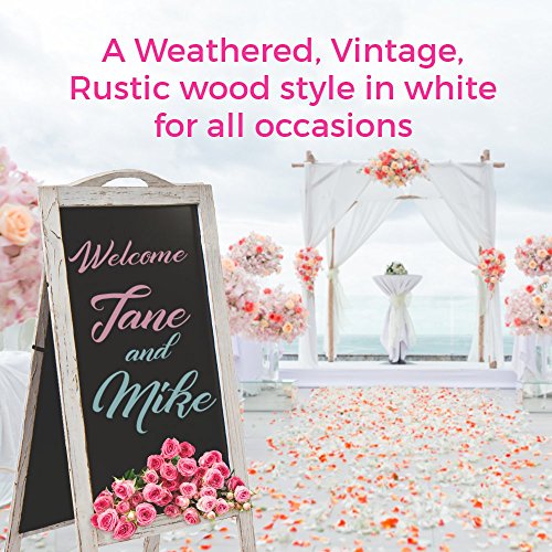 VINTAGE | RUSTIC SANDWICH BOARD SIDEWALK SIGN - Looking for that rustic, beautiful chalkboard signage for your Wedding or event? Our vintage weathered wood style and beautiful white color wins the eye test every time. Visitors will be impressed by both the detailed wood grain style and clean appearance of your new A-Frame chalkboard and the bold colorful liquid chalk writing on the surface.