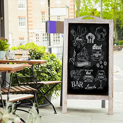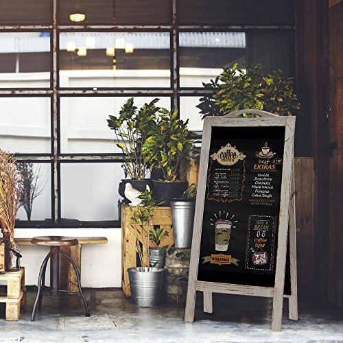 The vintage, weathered wood style works for all business types and will impress your customers on many levels. An integrated handle allows easy transport and can attract additional attention by tying on helium balloons or other add-ons (ie. lights, noise-makers). The extra large 30"x16.5" writing surface within the 40" tall frame provides ample space for all designs and messaging.