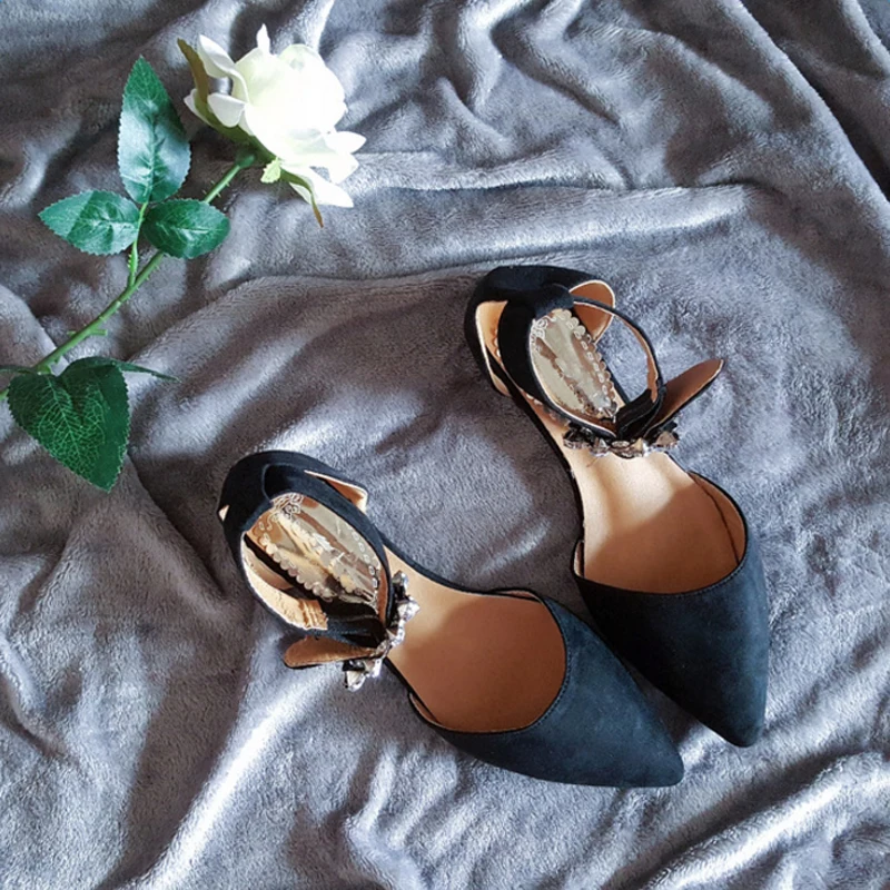 Feature3:pointed toe flats with crystal flower