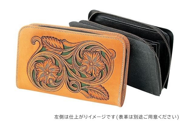 | 仕立て済みの中パーツにお好みの表革を組み合わせて完成させます。スタンピング・カービングを行う際は1.4~2.0mm厚くらいの表革がおすすめです。 |