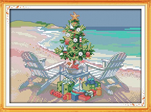 YEESAM ART® New Cross Stitch Kits Advanced Patterns for Beginners Kids Adults - Christmas Tree 11 CT Stamped 38×27 cm - DIY Needlework Wedding Christmas Gifts