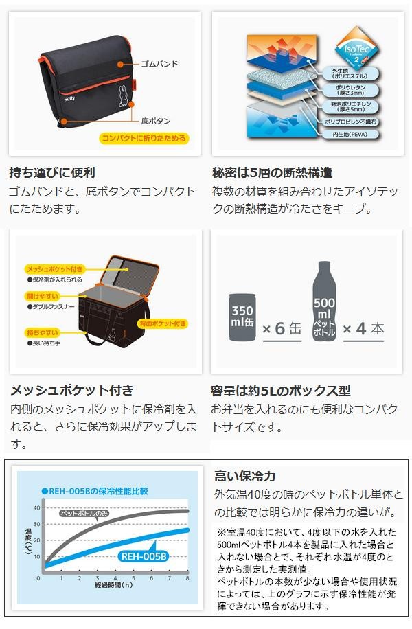 アウトドアやキャンプ、学校行事、ショッピングなどさまざまな用途に使える便利なクーラー。アイソテック5層断熱構造の高い保冷力が、冷たさと鮮度を運びます。お弁当を入れるのにもピッタリなボックスタイプです。かわいいミッフィーデザイン! |