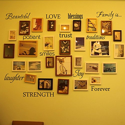 MairGwall Words Art Vinyl Family Rules Wall Decal Quote Art Sticker Without Picture Frames (Black)
