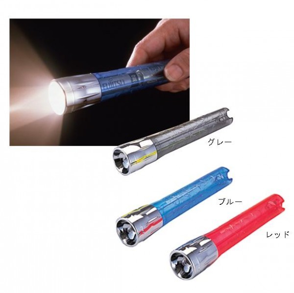 明るいクリプトン球を採用しました。スケルトンタイプのおしゃれなデザインです。堅牢なクロムメッキ仕上げのレンズ枠を採用しました。故障の少ない回転スイッチ機能付です。携帯に便利な長い吊り下げひも付です。 |