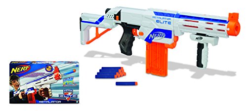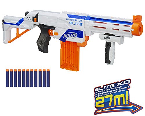 -. Feature : Nerf Nstrike Elite Retaliator Blaster 4 Different Configurations / A 4-in-1 nerf blaster / Modify for any mission / Removable stock and removable barrel with grip handle enables precision aiming / Fires up to 20 m