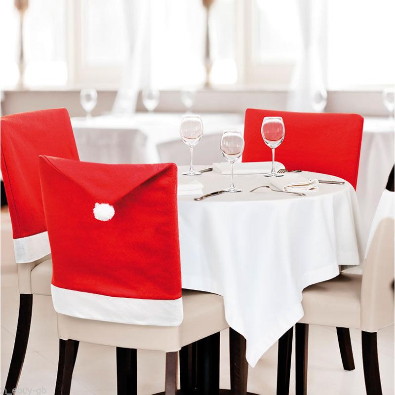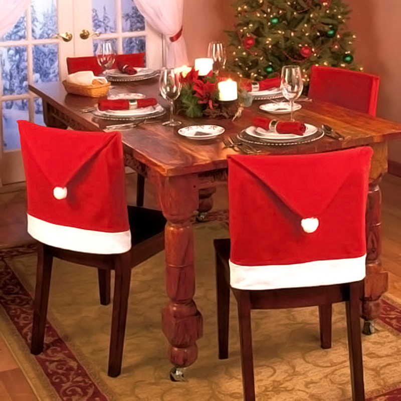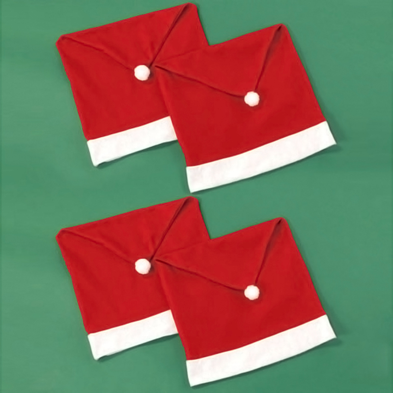 A quick and easy way to dress up your holiday table!Add a festive look to your holiday party with 4 pcs / lot Santa Clause Red Hat Chair Back Covers
