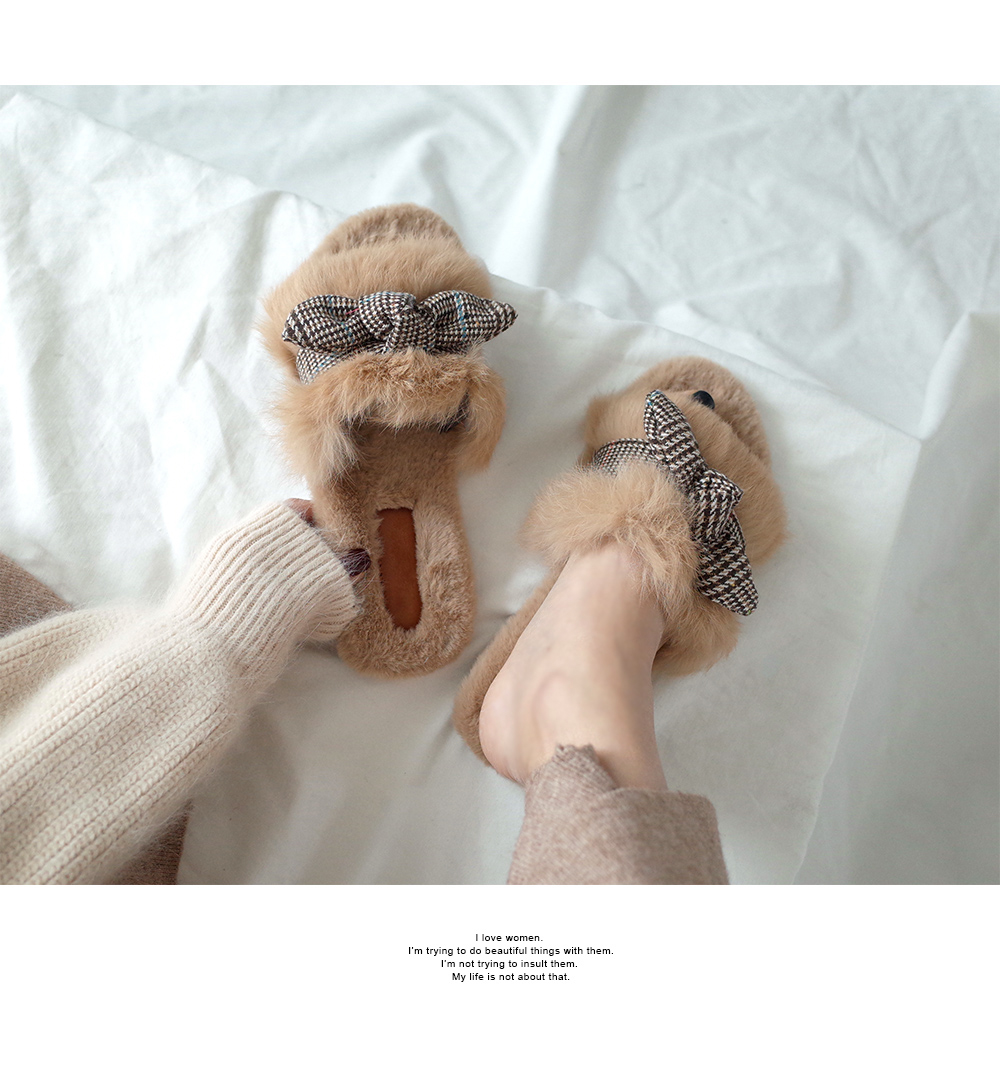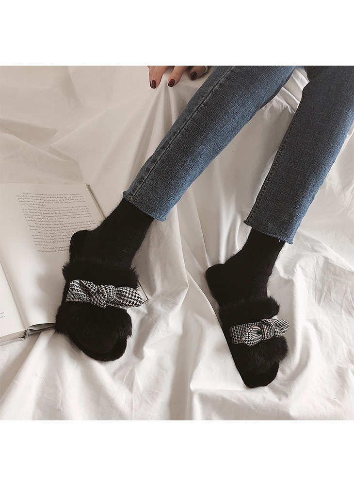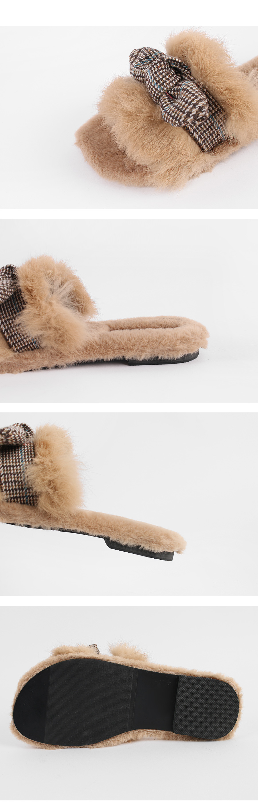 전체가 뽀송한 토끼털로 되어있어서 웜한 무드가 느껴지고 그 위로 체크리본이 묶여져있어서 걸리시하게 연출됩니다.