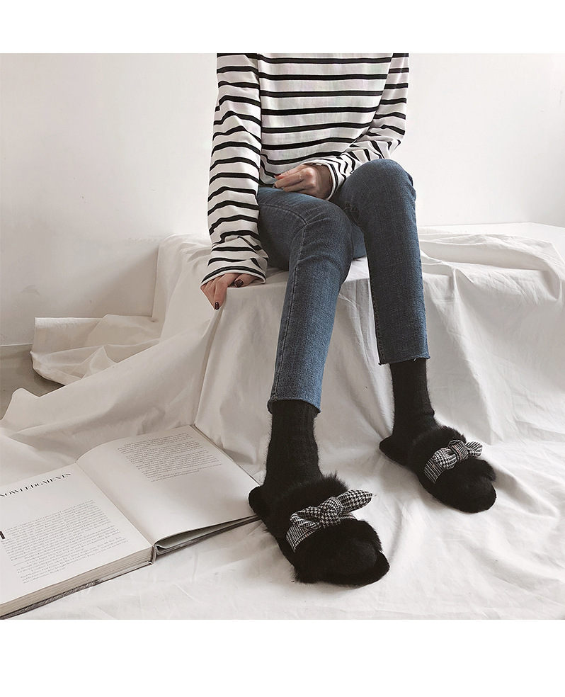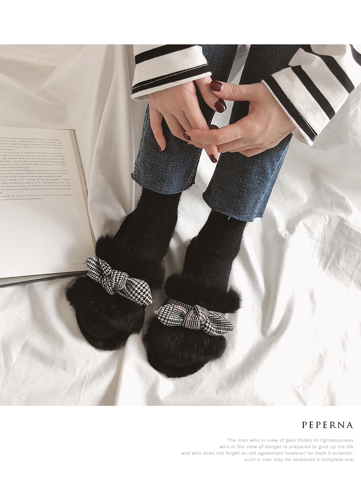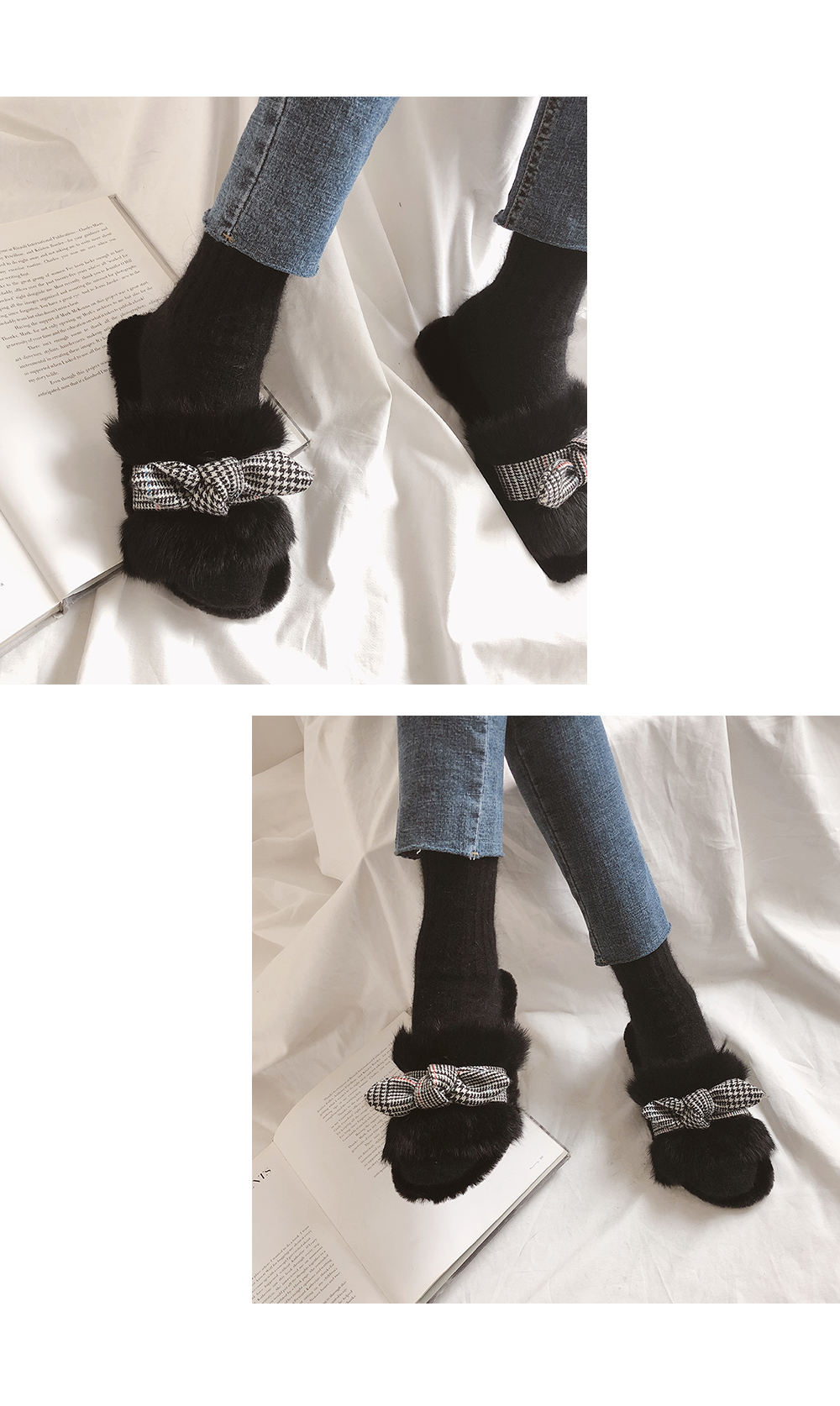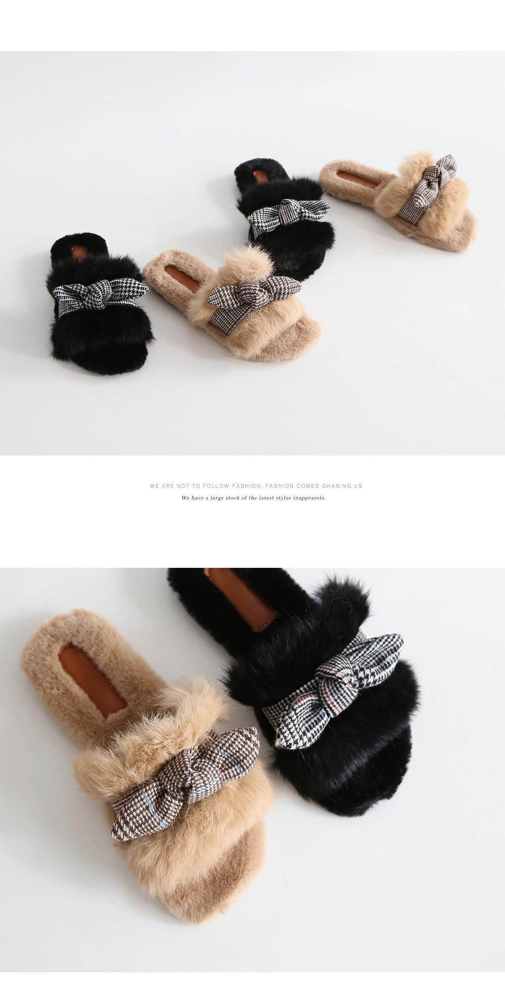 리얼토끼털이 포인트되는 슬리퍼입니다.