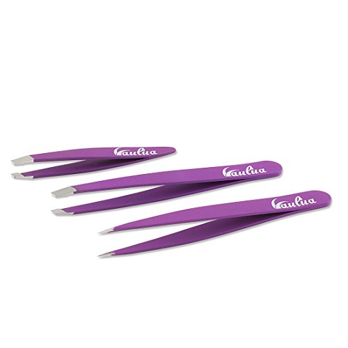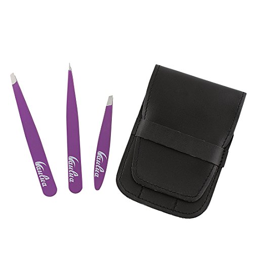 ✓HIGH VALUE: Three purple set of slant, mini slant as well as pointed tweezers set comes with high quality leather case for easy storing and protecting from external harmful environment.