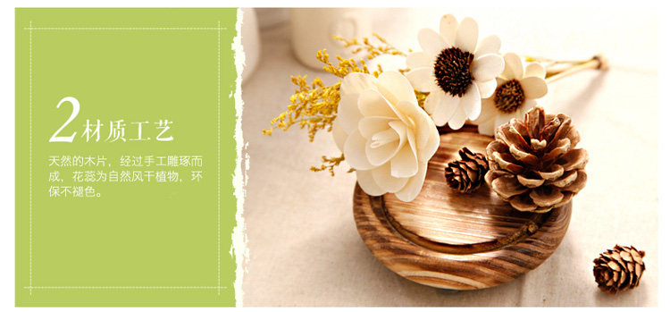 Material: glass + wood + dried flowers / pine nuts