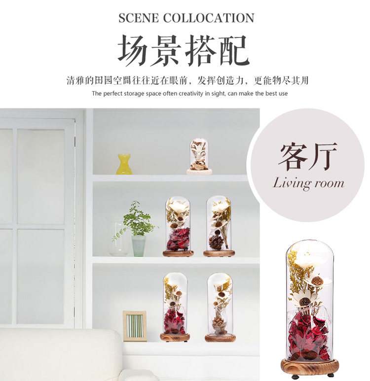zakka创意家居装饰品摆件干花玻璃罩客厅卧室电视柜摆设结婚礼物