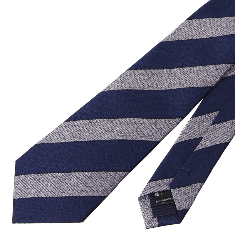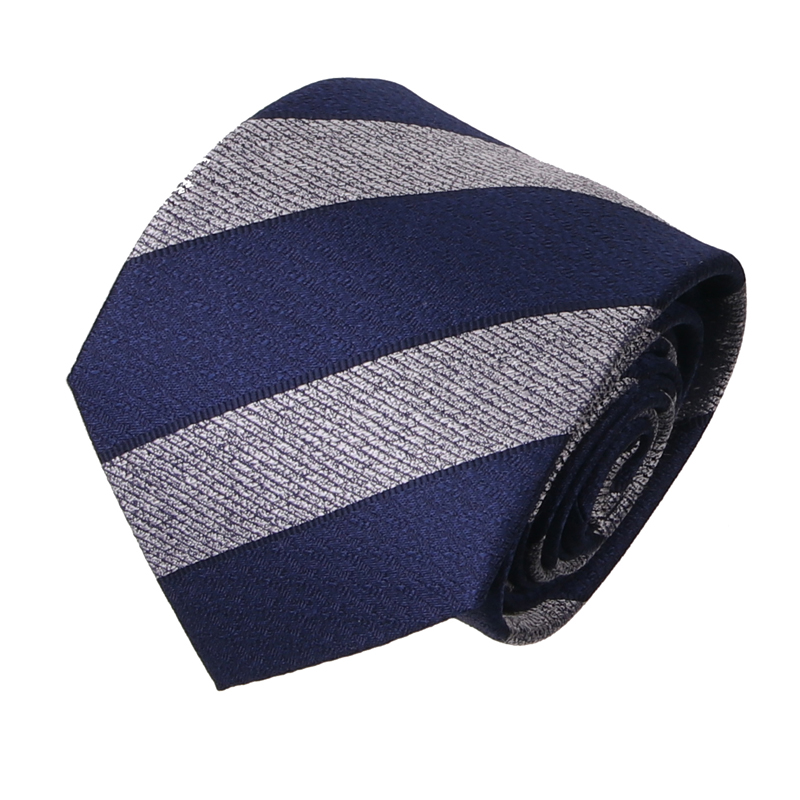 조직이 다른 톤앤톤배색의 포인트 화이트 배색을 준 블럭 스트라이프 타이