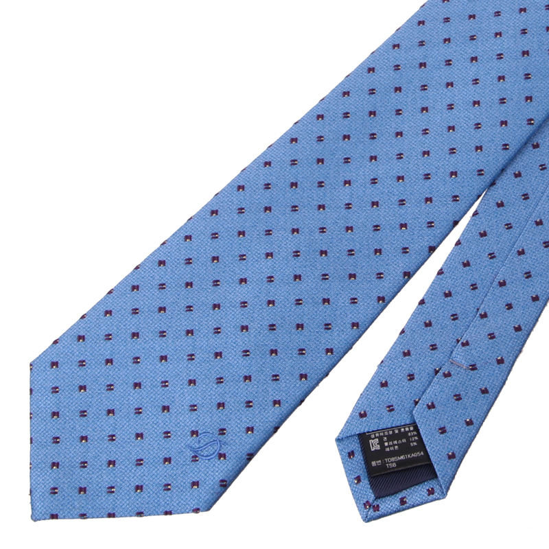기하학적인 패턴과 포인트를 가미한 D로고 패턴이 잘 어울러진 올오버 타이