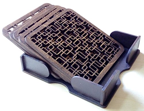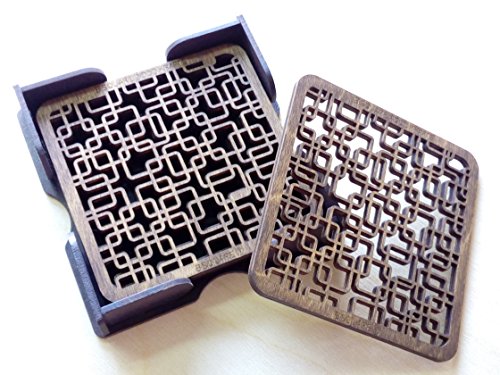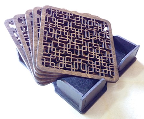 BSQUARE Handcrafted Wooden Coasters With Customised Wood Box Tea Coasters Dark Walnut