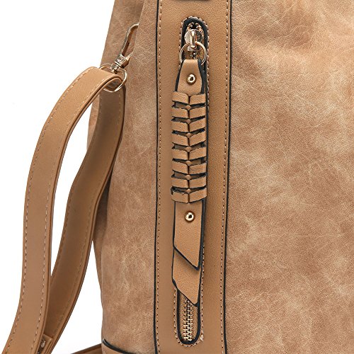 -. Feature : Material: PU Leather / Size: 13.39 L*11.81 H*5.51 W inch / Zipper closure. Removable and adjustable shoulder straps / Internal structure: Two large interior compartments separated by a zippered divider pocket. One interior zipper pocket. one with a cell phone pocket and the other with a small zipper pocket / Capacity: wallet, mobile phone, keys, folding umbrella, Ipad Air, text book etc