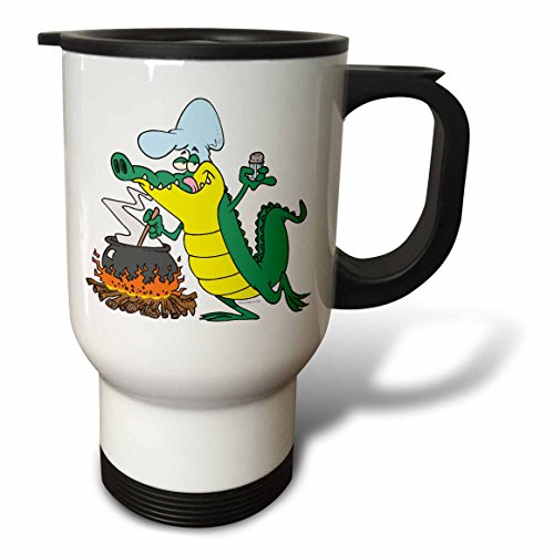 3dRose Funny Chef Cooking Gator Alligator Cartoon Travel Mug, Stainless Steel, 14-Ounce