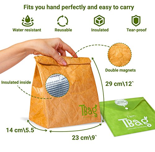 ✅ PERFECT LUNCH SACK? – YES! Our Brown Paper Lunch Bag is made of Tyvek material which is Strong, Reusable, Tear-Proof and Leakproof. The T.Bag is a brilliant replacement for plastic lunch boxes. It’s ideal for storing foods to bring to office, school, workplace, picnic, beach and BBQ.