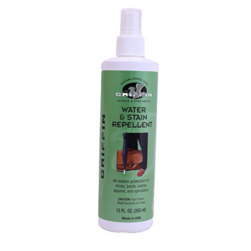 Product Description Griffin Shoe Care Leather Water Stain Repellent is specifically formulated to protect all types of shoes. It provides a breathable layer of protection against water, dirt and stains that keeps these elements on the surface where they can easily be wiped away. 0