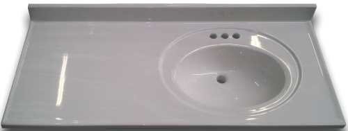 - Cultured marble standard vanity top with right recessed bowlpredrilled for 4" center set Faucet22" x 37"solid white